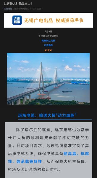 官媒點贊!遠東助力世界最大跨度斜拉橋——常泰長江大橋通車!